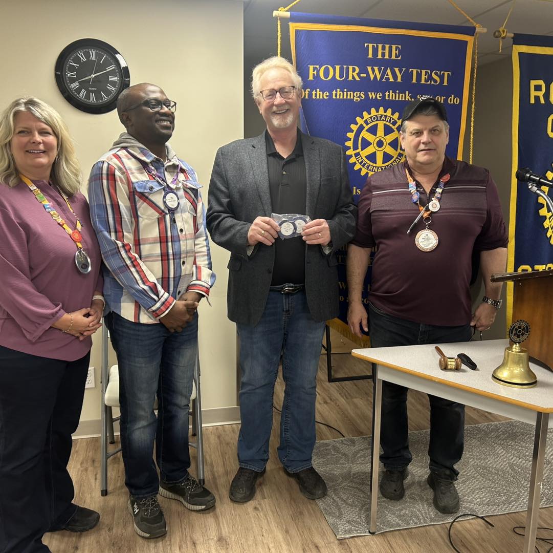 Wes Broadhead was inducted into the Rotary Club of St. Albert on February 13, 2026. He is shown here with his sponsor Cathy Heron, Idy Agbonison (Membership) and President Ed Hunt. Welcome to the club Wes!!
