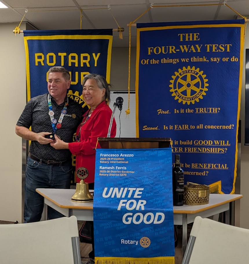 Congratulations to Darel Baker who received his Paul Harris Fellow + 6 (woot! woot!) pin from Foundation Chair Sandra Fenton.